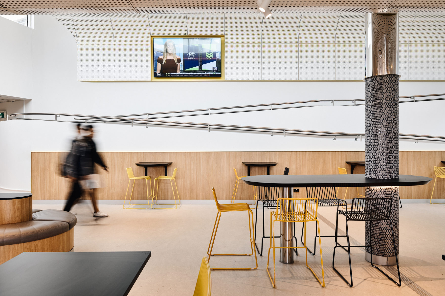 This precinct comprises a series of projects delivered over several years for Monash University, including the revitalisation of a swimming pool, a new multipurpose centre, dining facilities, amenities, and a faculty address. Together, they establish a cohesive architectural language that enhances wayfinding, strengthens institutional identity, and improves environmental performance. Central to the design approach is the understanding that sport plays a vital role in university life—not only as a site of competition but as a catalyst for social connection, wellbeing, and campus culture. Each space is designed to perform multiple functions, reflecting the need for adaptability and intensity of use. From formal sport to informal gathering, the precinct supports a diverse and integrated student experience.